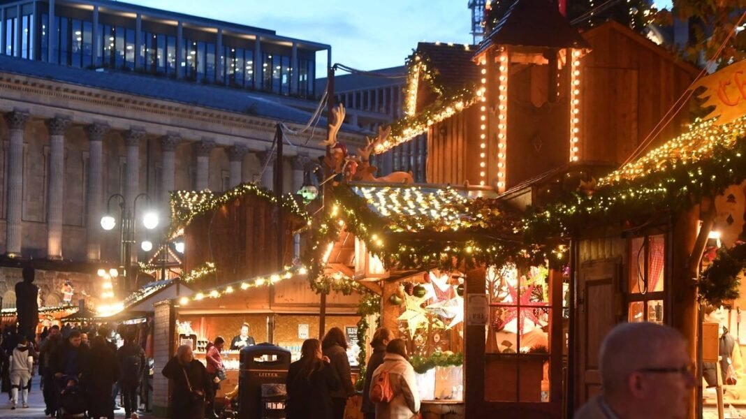 “Birmingham Christmas Market Bustling Despite Rainy Chaos”