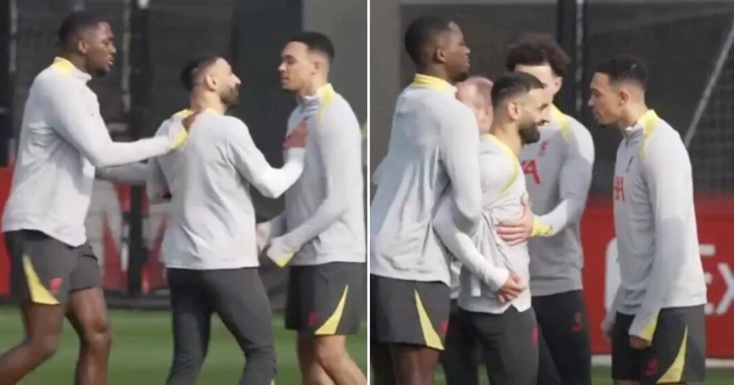 Mohamed Salah and Trent Alexander-Arnold were observed in an intense training session before Liverpool’s critical Champions League semi-final second leg against PSG at Anfield.