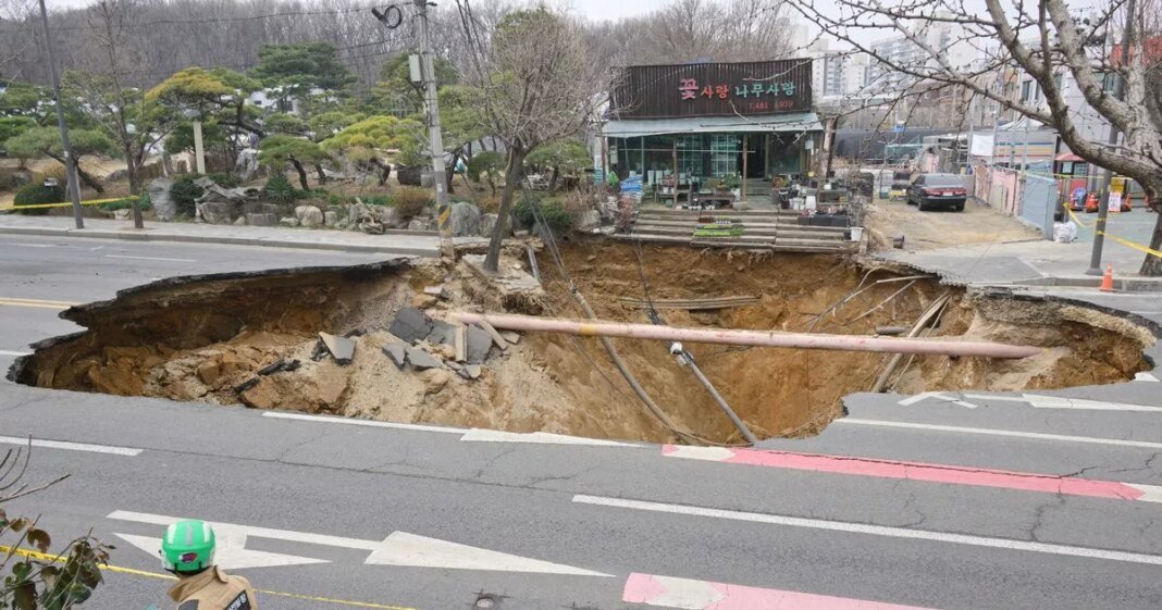 A tragic incident unfolded in Seoul as a motorcyclist met his untimely death after a massive sinkhole, measuring 65.62 feet deep, opened up during rush hour. The man, believed to be in his 30s, was riding his motorcycle in the Gangdong district when the road suddenly collapsed above a subway tunnel undergoing construction.