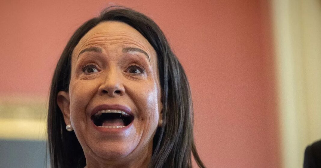 Maria Corina Machado, the recipient of the 2025 Nobel Peace Prize, announced that she presented the award to Donald Trump during a meeting at the Oval Office this afternoon. Many had anticipated that Machado, a prominent Venezuelan opposition figure, would assume leadership following Trump’s recent intervention to remove dictator Nicolas Maduro from power.